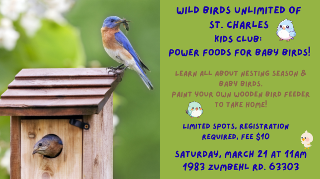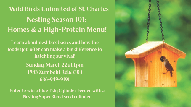 Welcoming bluebirds to your backyard is as much a treat as hosting Ron Darling in our shop! Join us for expert tips on how to optimize your yard for attracting Missouri's state bird. Ron, Missouri Bluebird Society member with years of bluebirding experience, will discuss bluebird favorite foods & feeders, types of preferred bird baths, as well as when to install a nesting box. This event is free to attend, we do request a RSVP, please. Call the store at 636-949-9191 or email us at [email protected].